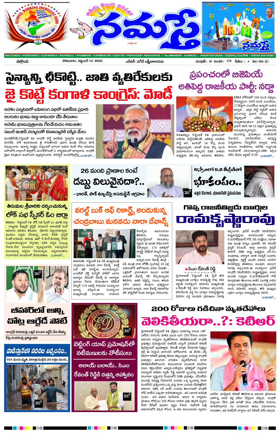 నమస్తేన్యూస్ (ఎల్ బి నగర్) సెప్టెంబర్ 16 రంగారెడ్డి జిల్లా సాయినాధ్ జర్నలిస్ట్:కాంపిటీషన్ 2025-26. ఈ విద్యా సంవత్సరం జాతీయ స్థాయిలో ఆర్ట్స్ కాంపిటీషన్ పోటీలు ఘనంగా నిర్వహించారు. ఈ కాంపిటేషన్లో స్థానిక తెలంగాణసాంఘిక సంక్షేమ గురుకుల పాఠశాల బాలురు భువనగిరి నుండి విద్యార్థులు పాల్గొన్నారు. ఈ గురుకుల పాఠశాల నుండి 17 మంది విద్యార్థులు జాతీయ స్థాయిలో విజయాన్ని సాధించి సత్తా చాటారు. ప్రతిభ కనబరిచిన విద్యార్థుల లో ఏం హర్షవర్ధన్ ఆర్ట్స్ మెరిట్ అవార్డ్ […]